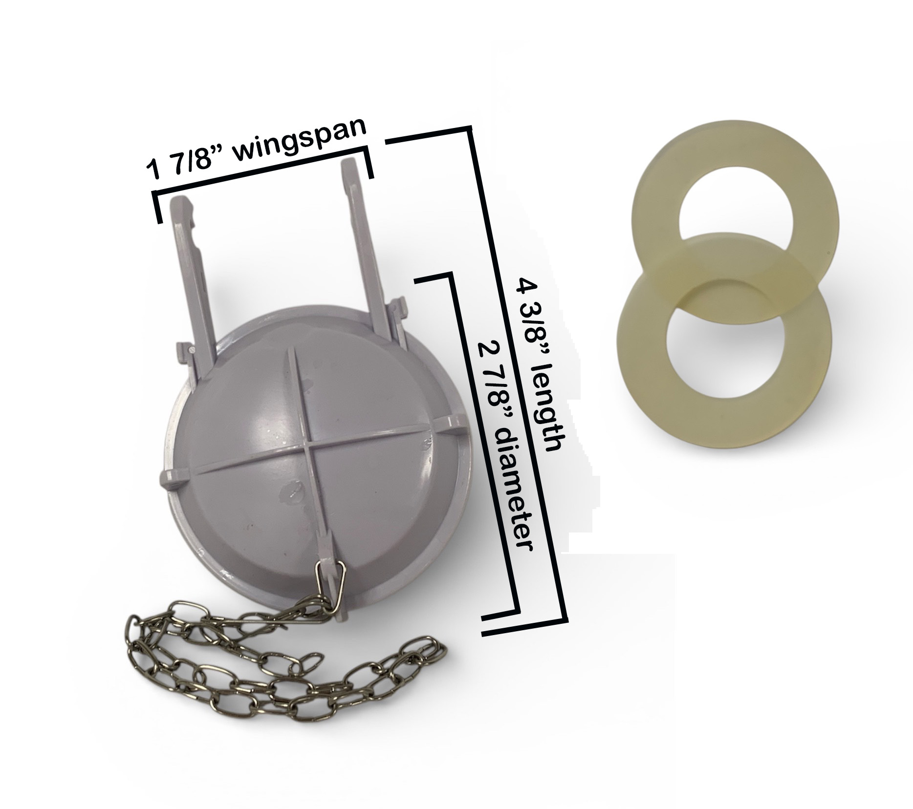 - 2.5-inch flapper with two replaceable silicone seals