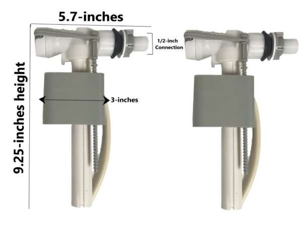 - Corrosion-resistant – High Impact ABS Material. European Type Side mount Fill Valve with 1/2 inch connection and 7/8 inch adapter for American connections. Universal fit for 1 and 2 piece side fill toilets.