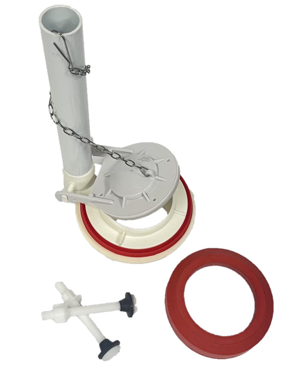 - Installation parts included: nylon bolts, rubber gasket, hardbody flapper