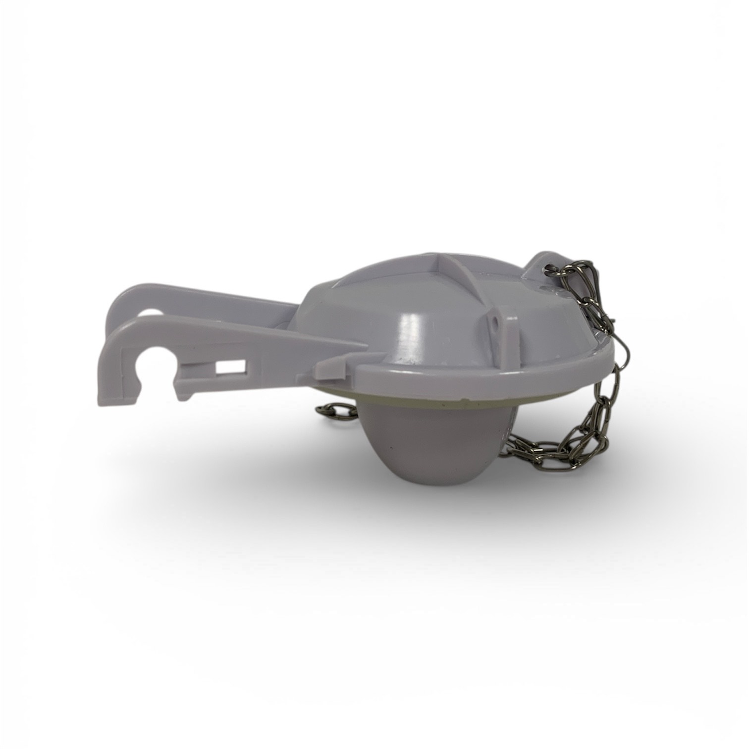 - Angled flapper design sits lower in the tank to increase water displacement during each flush